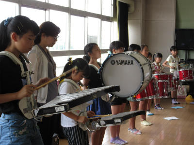 金管バンドクラブの児童が、運動会に向けて楽器の練習に来ていました。2学期始まると、すぐに運動会の練習があるので、しっかり頑張ってください。