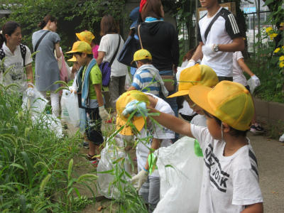 低学年の児童は、お家の人と協力してしっかり草を取っていました。高学年の児童は、一輪車やリヤカーで、草集めが頑張ってくれていました。ありがとうございました。