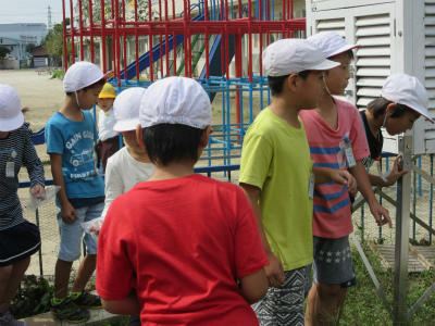 3年生が、理科の時間に、虫さがしを行っていました。今の時期なので、なかなか昆虫は見つからなかったけれど、いろいろな場所を探していました。