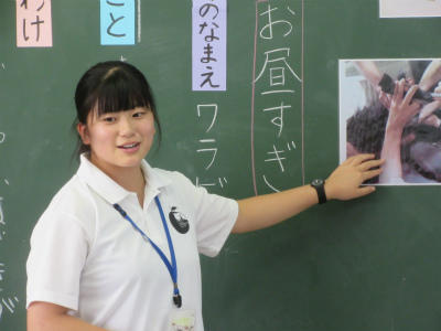 2年生が、生活目標の発表をしていました。あいさつと友達と仲良くするということをしっかり伝えていました。実習生も、今日で最終日なので、みんなにお別れを言いました。
