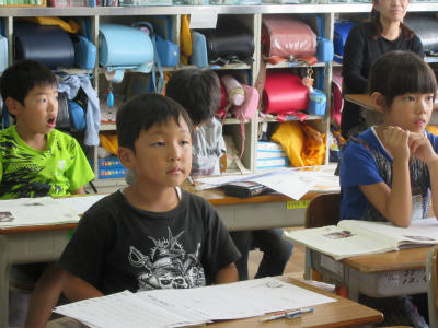 クラスのよっては、担任の先生が『読み聞かせ』をやっていました。3年生は、『ジュゲム、ジュゲム ……』の本を読んでいました。一緒に、名前を読む場面もありました。