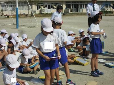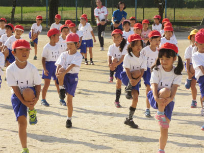 1年生が、動物にあわせて、いろいろな跳び方をしていました。特に、うさぎ跳びをしているのがかわいかったです。