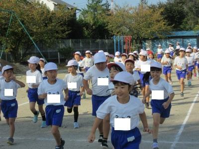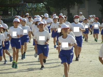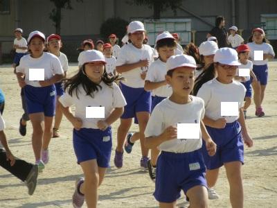 5分間走で、3分……4分…というあたりがいちばんきついですが、さらに力をつけるために、一段と速く走るようにしています。最後は、行進をして教室にもどります。
