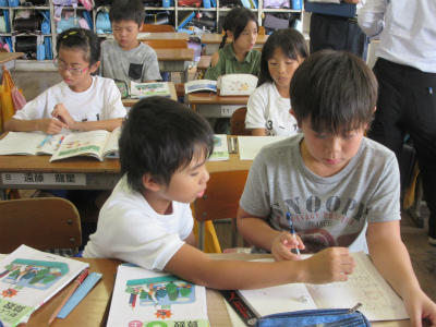 2年生が実習生とともに、仲良く学習していました。『どうぶつ園のじゅうい』というという単元をしっかり読み取って、発表していました。