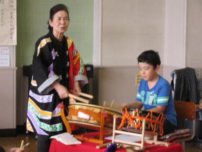 4年生が、三味線・尺八の指導をしていただきました。『こきりこ』の音楽にあわせて、昔の楽器の三味線や尺八、太鼓を使って楽しそうに活動していました。ありがとうございました。