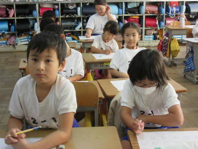 1年生が、チャレンジタイム・国語の時間に、漢字の書き順について学習していました。手を使って、書き順を確かめていました。1つ1つ、しっかり覚えてください。