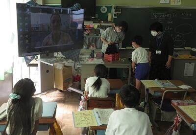 4時間目は、3年1組の「英語活動」の授業でした。交流校のオーストラリアとの接続確認をしたところ、相手校の担当の先生とうまく繋がったので、3年生と相手校の先生との交流を行いました。短い時間でしたが、授業で教わっていた「I Like ~ 」を使って英語で話してみました。中には、「I Like KENDAMA !」と言って、けん玉を披露する子もいました。その技を見たオーストラリアの先生が、ビックリ!大きな拍手をもらいました。最後に、今、練習している「運動会の歌」を元気に歌って聞かせてあげました。
