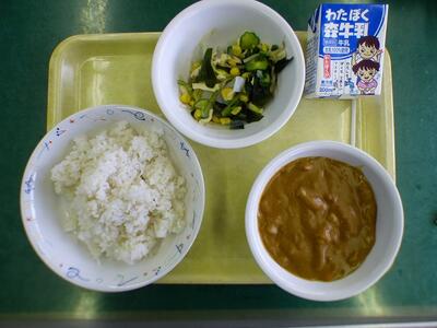 本日の献立は、麦ごはん、冬野菜カレー、海草とこんにゃくのサラダ、柑橘ドレッシング、牛乳でした。