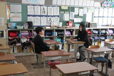 6年生の外国語では、学期末のスピーキングテストをしています。ALTの先生と英語で会話します。みんなちょっと緊張した様子でした。待っている間に復習プリントにも取り組みます。