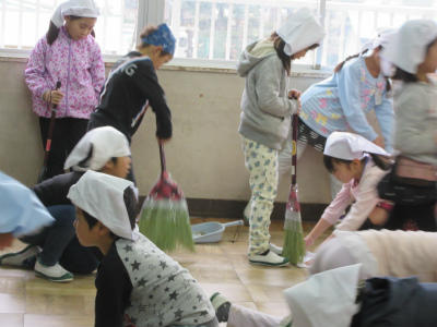 2年生の児童が、1年生の入学式に自分たちの椅子を貸してしまったので、教室が広くなり、一生懸命掃除をしていました。とてもきれいになってよかったですね。