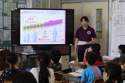養護教諭による授業でした。一生の間に発育がさかんな時期が2回あること、