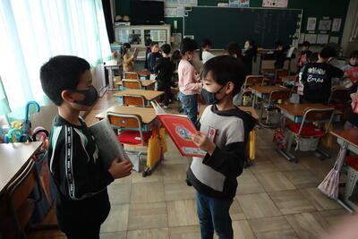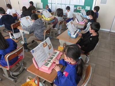 2年生が音楽の授業で、鍵盤ハーモニカの練習をしていました。曲は、『こぎつね』。「こぎつね、コンコン、山のなか~、山のなか~・・・」の『こぎつね』です。1度は聴いたことがあるのではないでしょうか。でも、いつもと少し違います。