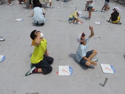 3年生が理科の授業「太陽と影」で太陽の動き方を観察しています。しかし・・・