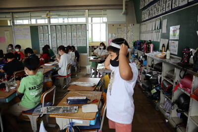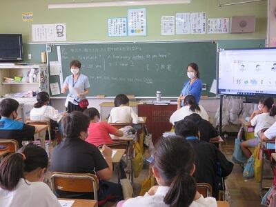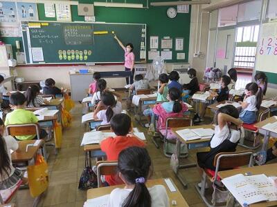 5年生の英語の授業は、「How many・・・」「How much・・・」の違いを学習していました。後半は、リスニングのテストでした。問題文が配付され、2人の英語の先生が、会話しているのを聴いて答えを選ぶという方式でした。みんな、よく聞き取っているようです。