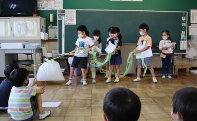 国語の授業では、班で役割をきめて「大きなかぶ」を練習しました。
