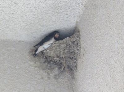 第二校舎の昇降口にツバメの巣があります。子どもたちが教室へ入り静かになると鳴き声が聞こえてきます。親鳥がえさを与えに来ます。無事巣立って欲しいと見守る毎日です。