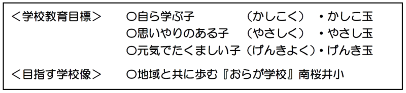 「地域と共に歩む『おらが学校』南桜井小」を目指して