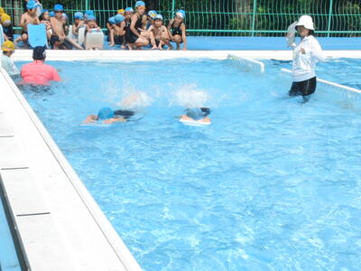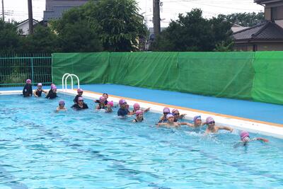 水泳学習は終盤です。どの学年も検定を行っています。1年生は小学校の水泳学習にすっかり慣れてきました。少しでも上手になろうと、自分のめあてを立ててがんばっていました。