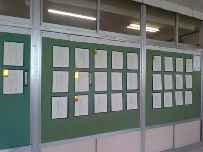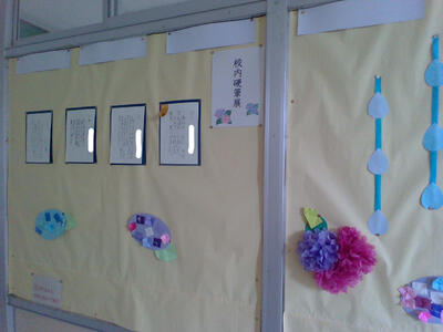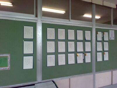 授業参観に合わせて、校内硬筆展を開催しています。一文字一文字に力を込めて書きました。