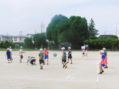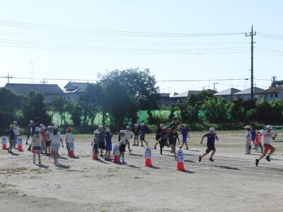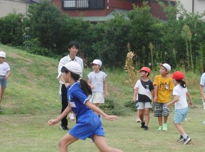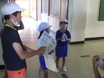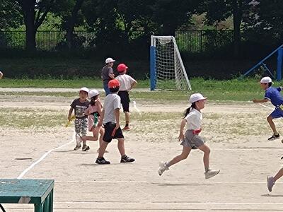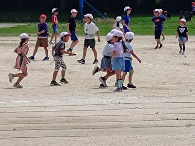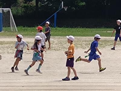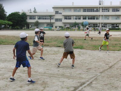 運動委員会が企画した外遊びレク。今月はしっぽ取りです。2つの学年ずつ実施します。運動委員はオニになってずっと走っています。タフです!暑いけれど、風が吹き抜ける宮川小の校庭で元気に走り回っていました。