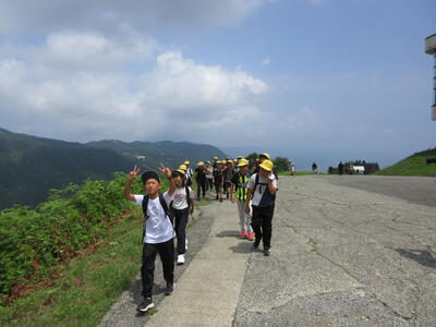 見晴らしのよい山の上に到着し、さらに坂道を登っていきます。
