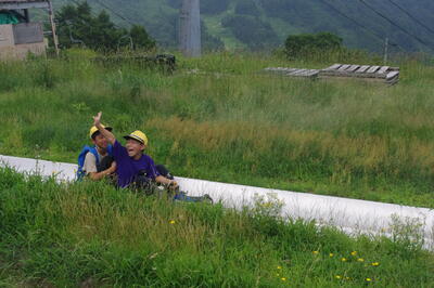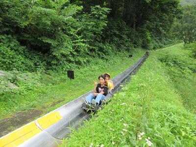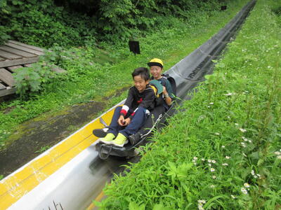 サマーボブスレーのスタートです。スピードコントロールしながら風を切って滑ります。