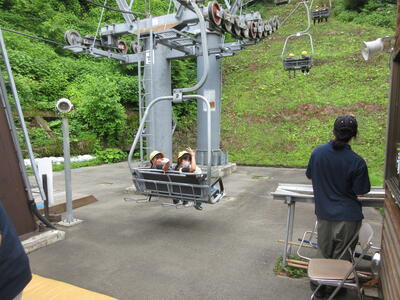 湯沢に到着し、ゴンドラで一気に山の上に上がります。