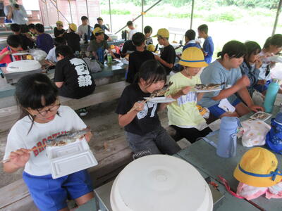 1泊2日の林間学校から5年生が帰ってきました。おかえりなさい!天気の影響で少し行程が変わったところもありましたが、キャンプファイヤーもできて、充実した2日間の内容でした。最後の到着式でもしっかりと先生の話や友だちの感想発表を聴いていました。応援してくださった家の人へのお土産を渡すのも楽しみです。