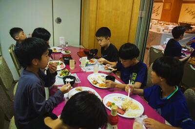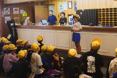 夕食前に入館式を行いました。ホテルの方のお話を聴き、子どもたちも元気よくあいさつをしました。