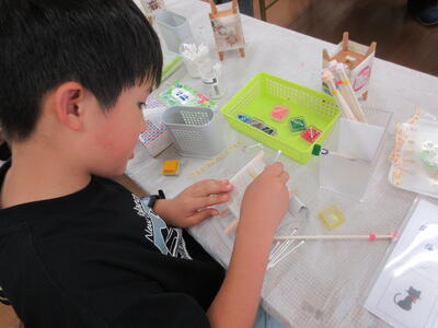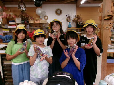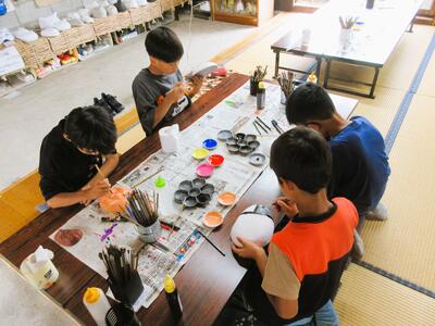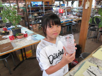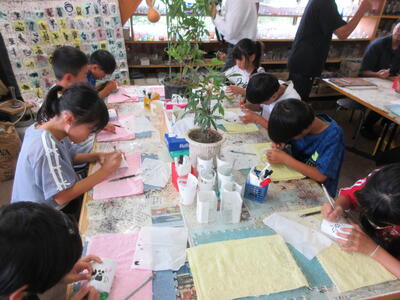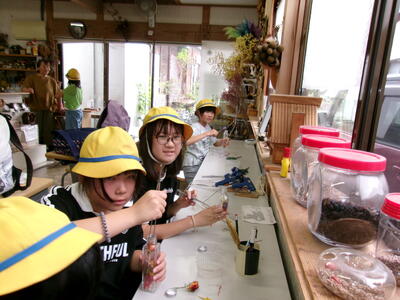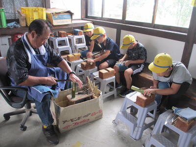 たくみの里での体験学習の様子です。事前に申し込んだそれぞれのお店で、自分だけの作品をつくりました。