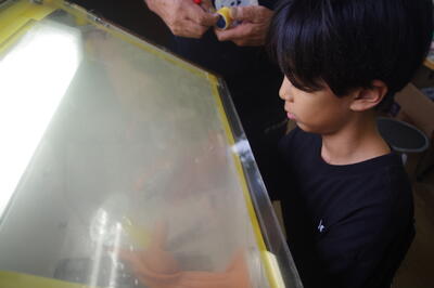 タブレット操作や裁縫など、保護者の方と一緒に活動する内容もありました。低学年は親御さんを見つけると手を振って笑顔でアピールしていました。