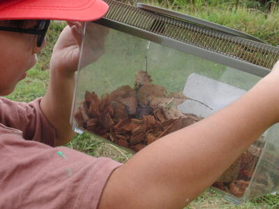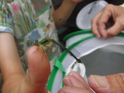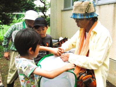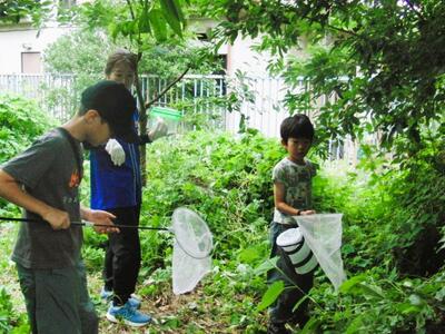 参加人数は少なかったのですが、職員も合わせると、ビオトープのあちらこちらから「いた!」「見て見て!」とい声が聞こえてきました。参加してくれた兄弟2人は、茂った草をものともせず、素早い網さばきで捕まえていきました。