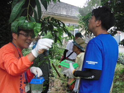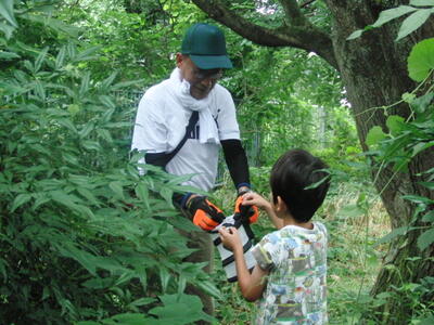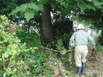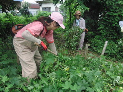 保護者の方や生態系保護協会の方は、環境保全作業に協力してくださり、覆いつくしたつる草を次々と刈り取ってくださいました。