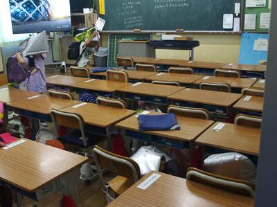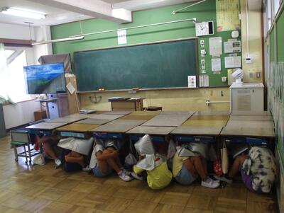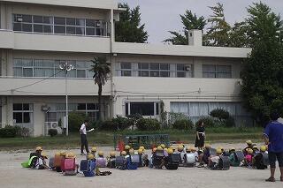 寒くなると暖房を使うようになり、空気が乾燥することから、火災が起こりやすくなります。今日は寒空の下、校庭に避難する火災の避難訓練を行いました。1年生も1学期よりスムーズに行動していました。避難後、代表の児童と先生方が実演し、火が燃えているのを発見した児童が先生を呼び、水消火器を使う様子を見ました。子どもにも、大人を呼ぶ、周りに知らせるという大切な役割ができます。家族でも火事にならないように気を付けることを話し合ってほしいです。