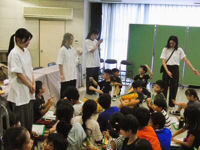 豊春市民センター(豊春地区公民館)は遊びに来たことがある子供たちも多いのですが、普段は入らないアート室やキッチン室、音楽室など、いろいろな活動ができる部屋を見せてもらいました。音楽室では、ちょうど篠笛(横笛)を練習している人の演奏も聞かせてもらいました。