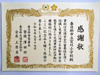 交通安全こども自転車埼玉県大会出場の児童を表彰しました。