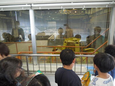 SUBARUは予約を取るのが大変ですが、担任や他の先生方ががんばったおかげで、見学することができました。日本中、世界中に産業の中心である自動車を送り出している工場の迫力を間近で感じることができました。また、展示室では、自動車の進化や環境への配慮についても学びました。
