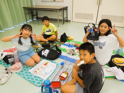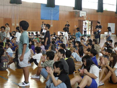 夕食の後、少し休憩して、お風呂の時間です。みんな口々に「気持ちよかった」「温泉サイコー」と言っていました。お風呂の後は、短い時間ですがレクタイムです。係が準備したゲームやクイズで楽しいひと時を過ごしました。