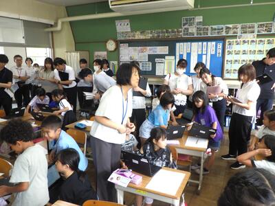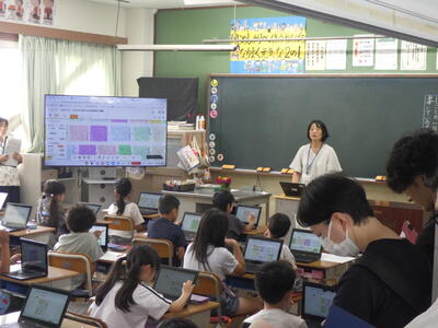 今日は市と県の教育委員会の先生方が、子どもたちと先生方の授業を参観する日です。子どもたちも緊張気味ですが、先生方も授業の内容や方法について成果や課題を話し合うので、とても緊張します。主に生活科や総合が中心に授業を公開しましたが、どの学年も活発な話し合いや活動を観ていただくことができました。
