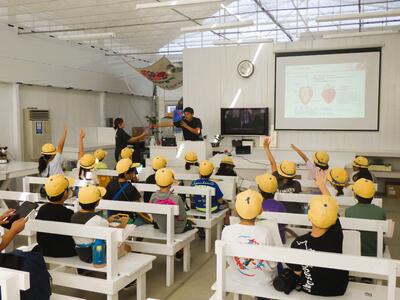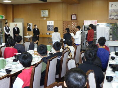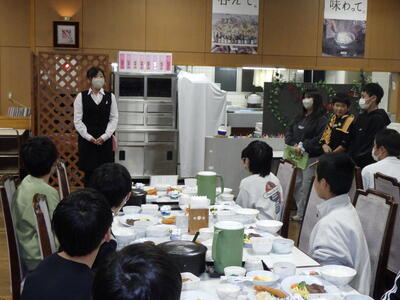 夕食前に入館式を行いました。ホテルの方のお話を聴き、子どもたちも元気よくあいさつをしました。