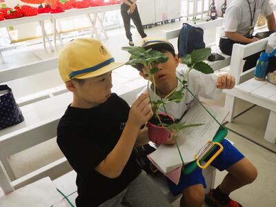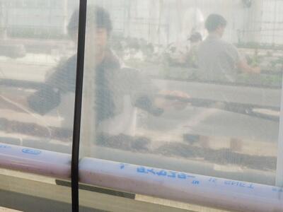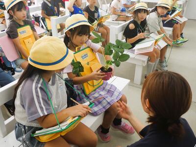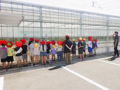 総合的な学習の時間で春日部の特色を調べている3年生は、有名な春日部のいちご「あまりん」を掘り下げて学習しています。それに関連して、直接質問がたくさんできて、メモを取る様子も真剣でした。ばい菌が入らないように外から見たビニールハウスの中では、来年の収穫に向けて、丁寧に苗を植えている作業や設備の様子を細かく見ることができました。