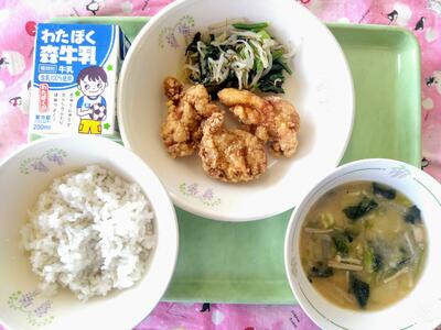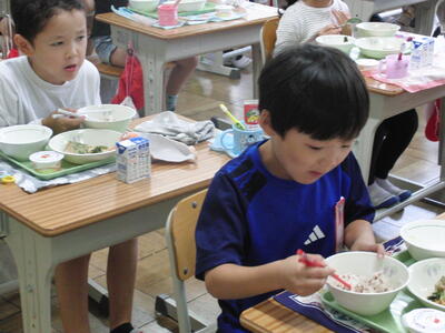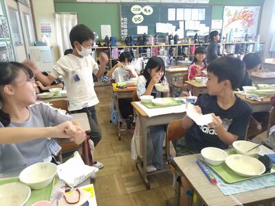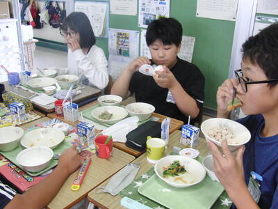 8日(水)と9日(木)の連日、調理員さんが新米を炊いてくれました。調理員さんが粒や色に不具合のあるものがないか丁寧にチェックしてくれたので、見た目もきれいで栄養のある麦ごはんに仕上がりました。詳しい献立はHP『今日の給食』をご覧ください。人気メニューのから揚げやビビンバで、よりいっそうごはんが進みました。5年生もペロリと完食でした。