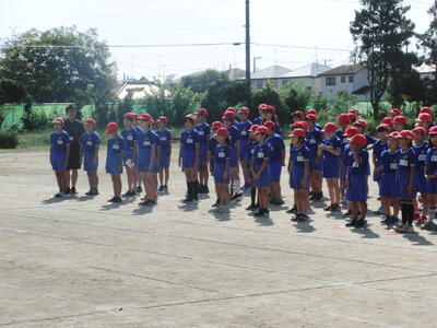 さわやかな秋晴れの朝。運動会の全体練習を1時間目に行いました。開閉会式の流れを確認しました。赤白に分かれて運動会の歌も練習からヒートアップ!本番が楽しみです。