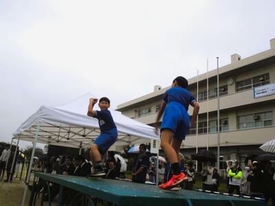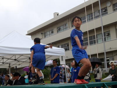 天候の影響でプログラムの変更や縮小を余儀なくされましたが、子供たちは、日頃の練習の成果を発揮し、元気いっぱいに競技や演技に取り組むことができました。保護者・地域の皆様の温かい御声援が、子供たちの大きな励みとなりました。感謝申し上げます。