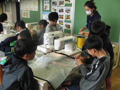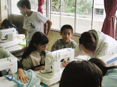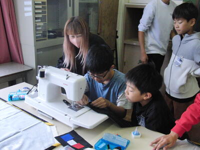 5年生がミシンでエプロンを制作する学習をしています。練習布で基本の操作を練習し、いよいよ選んだ生地でエプロンを縫い始めました。今日は学年の保護者や地域のボランティアの方々が、担任と一緒に授業の補助をしてくださいました。一人一人の困りごとに体寧に対応してくれたので、子どもたちは安心してミシン縫いに集中することができました。次回もよろしくお願いします。