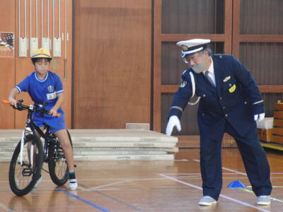 入学して半年、1年生は事故無く学校に通っています。3年生は友だち同士で自転車に乗ることが増えました。1年生は横断の仕方、3年生は自転車の乗り方について、それぞれ春日部警察署、交通指導員、市役所くらしの安全課のみなさんから実技指導をいただき、自分の歩き方、乗り方をチェックすることができました。これからも教室でチェックしたことを守ってください。