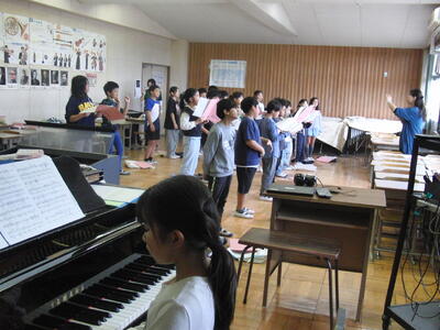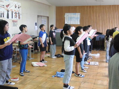 11月6日に行われる市内音楽会に向けて、4年生が猛練習をしています。9月に曲が決まり、ピアノ伴奏のオーディションも行われ、いよいよ練習も本格的になってきました。5年生や6年生が出場する小学校が多い中、宮川小は4年生が出場しています。大ホールのステージで自分たちの声が響くようにがんばって練習します。
