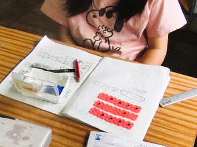かけ算の学習は2年生からです。かけ算はこれから先の算数、そして数学の基礎となる大事な学習です。九九を暗唱することも大事ですが、最初はかけ算のしくみについて丁寧に学びます。