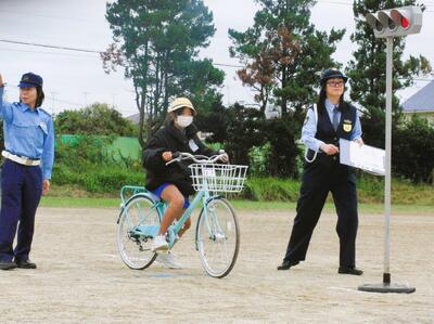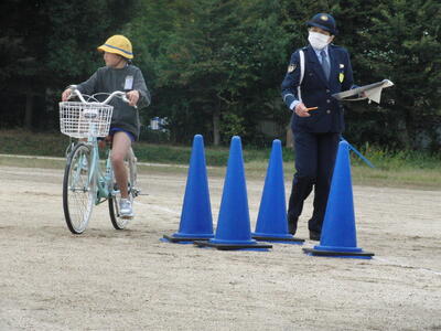 先日の1・3年生に引き続き、4年生の交通安全教室が行われました。4年生は自転車免許証を取得するための学科と実技の講習を受講します。1年前より安定感のある乗り方ができ、指導してくださった春日部警察署の方や交通指導員のみなさんから、「さすが4年生は乗り方が上手になっています」とお言葉をいただきました。講習では安全帽でしたが、講習の最後にはヘルメット着用についてご指導がありました。