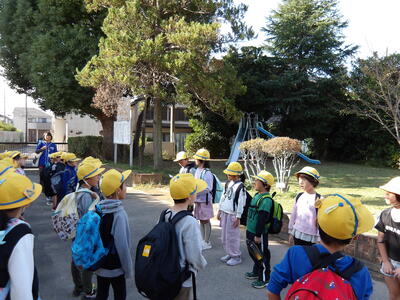 1・2年生が、生活科の校外学習で秋の自然を探しに内牧公園に出かけました。内牧公園には家族で出かけることも多いようで、知っていることを教えてくれる子がたくさんいました。それでも、歩いて、友だちと来るのは初めてだよと、校外学習の雰囲気を思い切り楽しんでいました。
